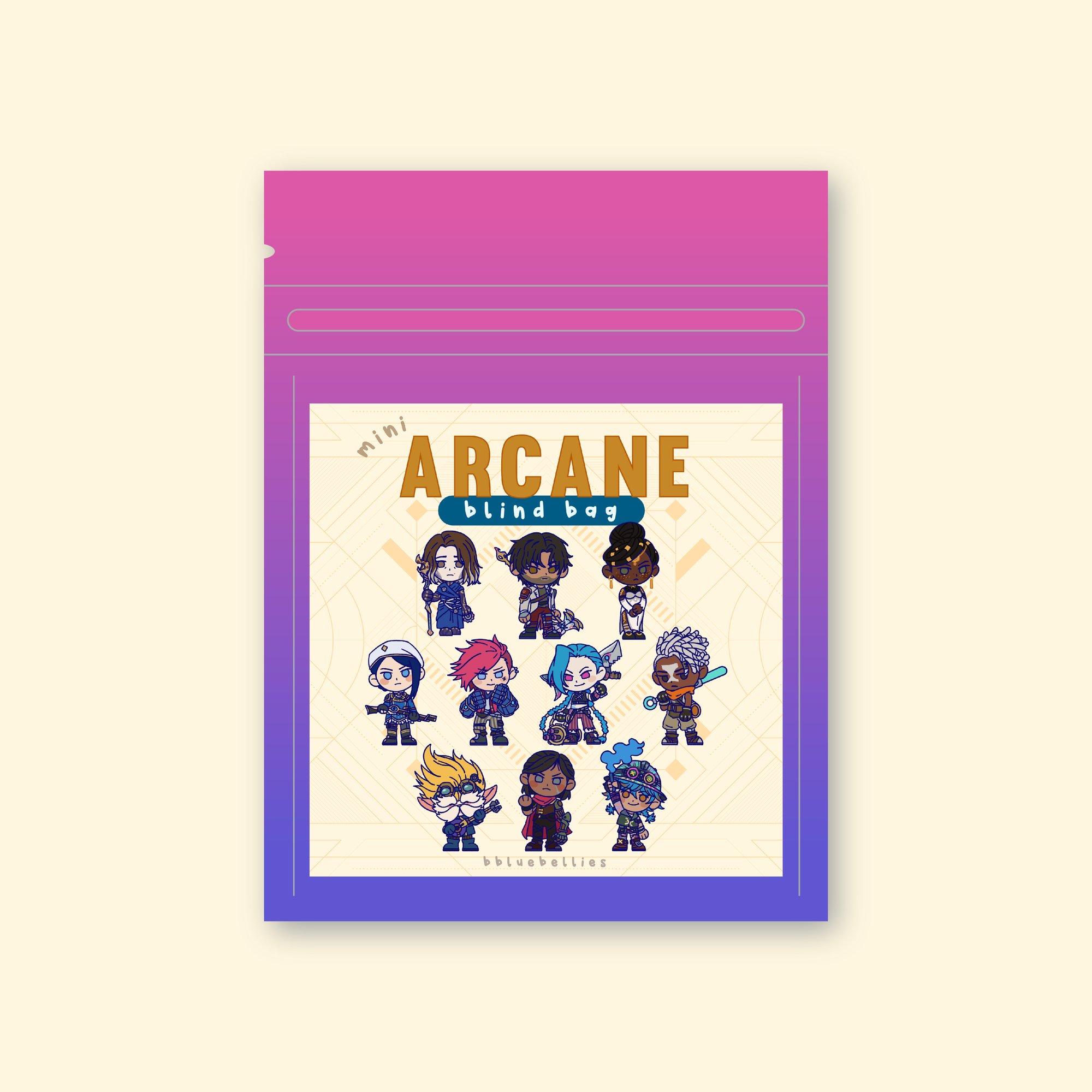 Each blind bag contains a random mini keychain from the Arcane Series.